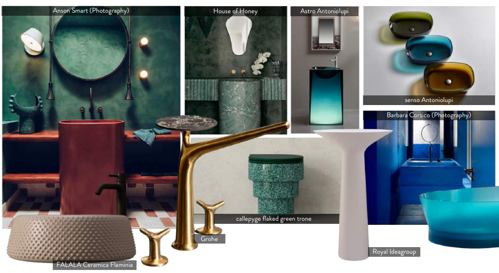 - Baños tipo spa con revestimientos inspirados en onix, jade y mármol fluido